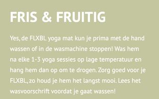 Ook is de yoga mat heel makkelijk te reinigen met de hand onder de kraan of douche. Zo kun je in Child Pose tenminste zorgeloos je voorhoofd op je eigen frisse mat leggen.